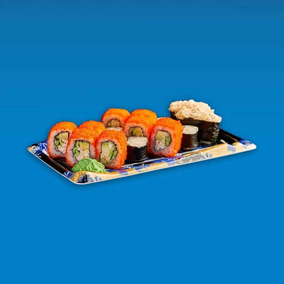 В суши-маркете Yume мы предлагаем вам насладиться этими восхитительным набором «Биг Синдзюку» в составе которого роллы: Калифорния, тигровая креветка и суши с крабом (2 шт).