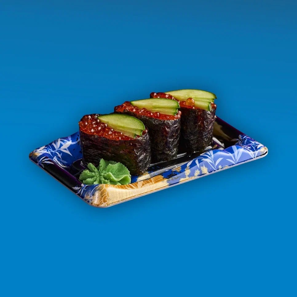 Гункан с красной икрой и огурцом (3 шт).