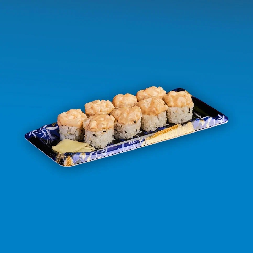 В суши-маркете Yume мы предлагаем вам насладиться этими восхитительными «Окаяма» в составе которых такие ингредиенты как рис, нори, угорь копченый, гребешок, спайси соус, соус кимчи, трюфельное масло, кунжут.